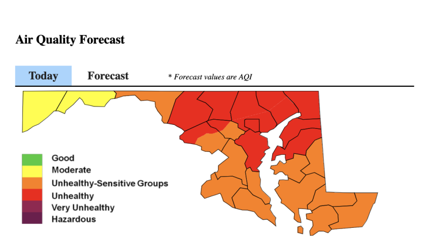 Canadian Wildfires Smoke Map Maryland