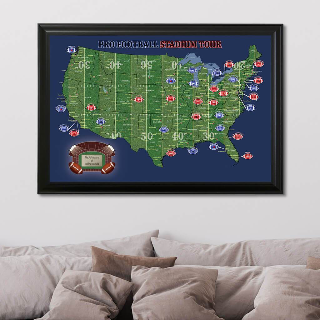 Pro Football Stadium Map | American Football Travel Map Push Pin