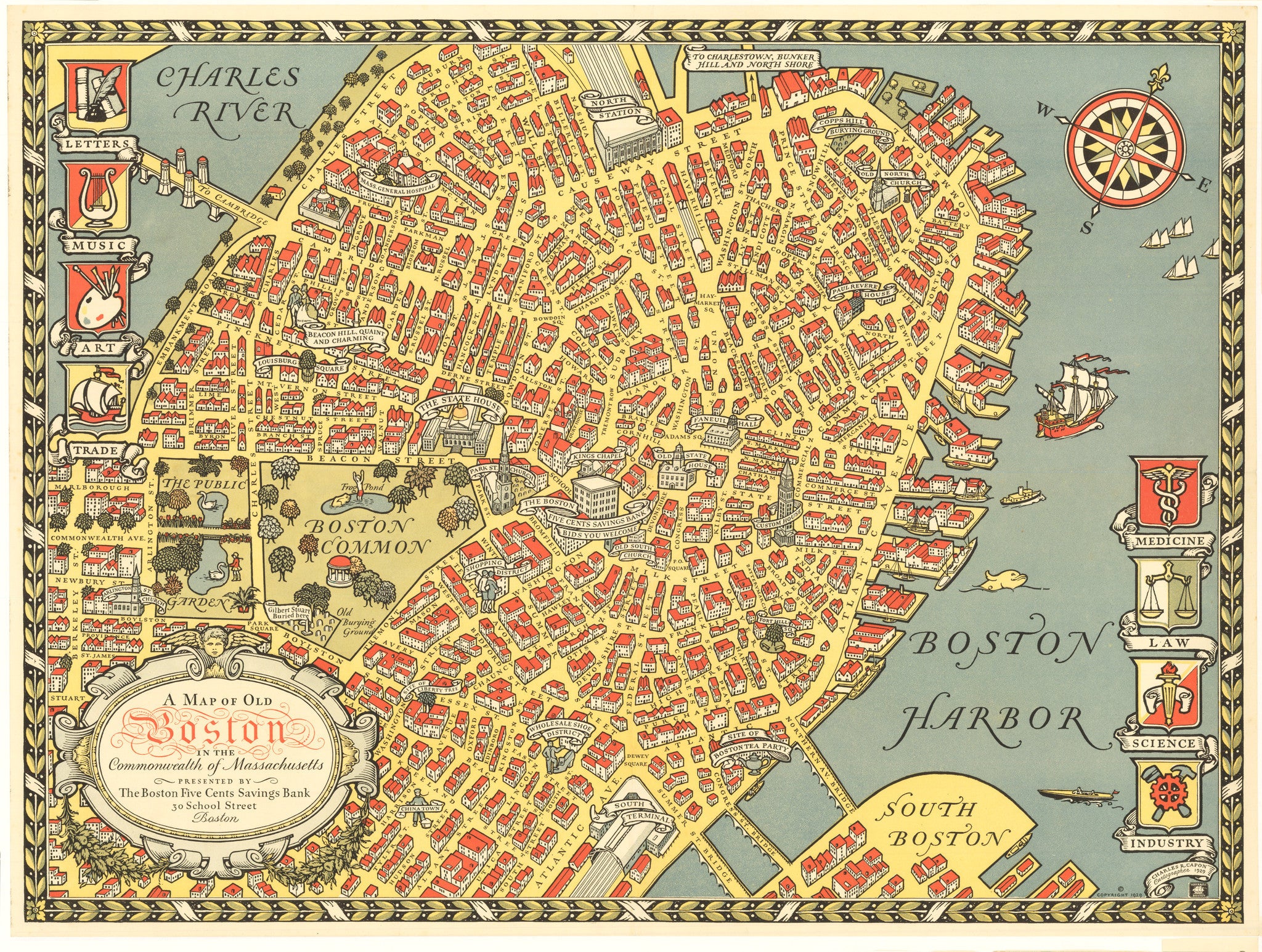 1929 Map of Old Boston by: Capron : theVintageMapShop.– the